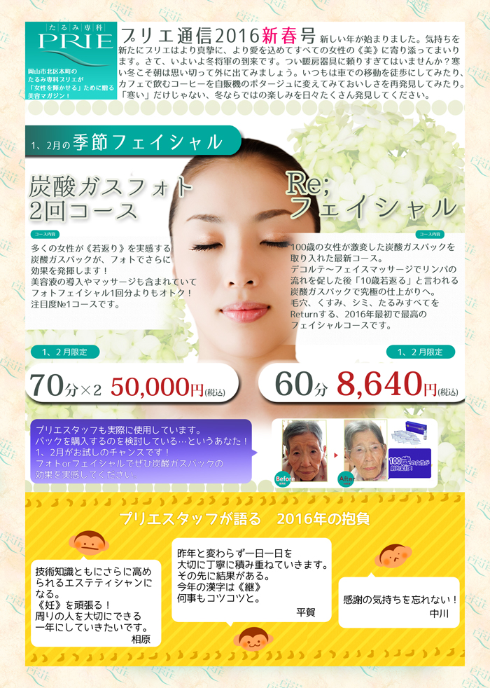 お得なフェイシャルとフォトコースで炭酸ガスパックをぜひぜひお試しください。