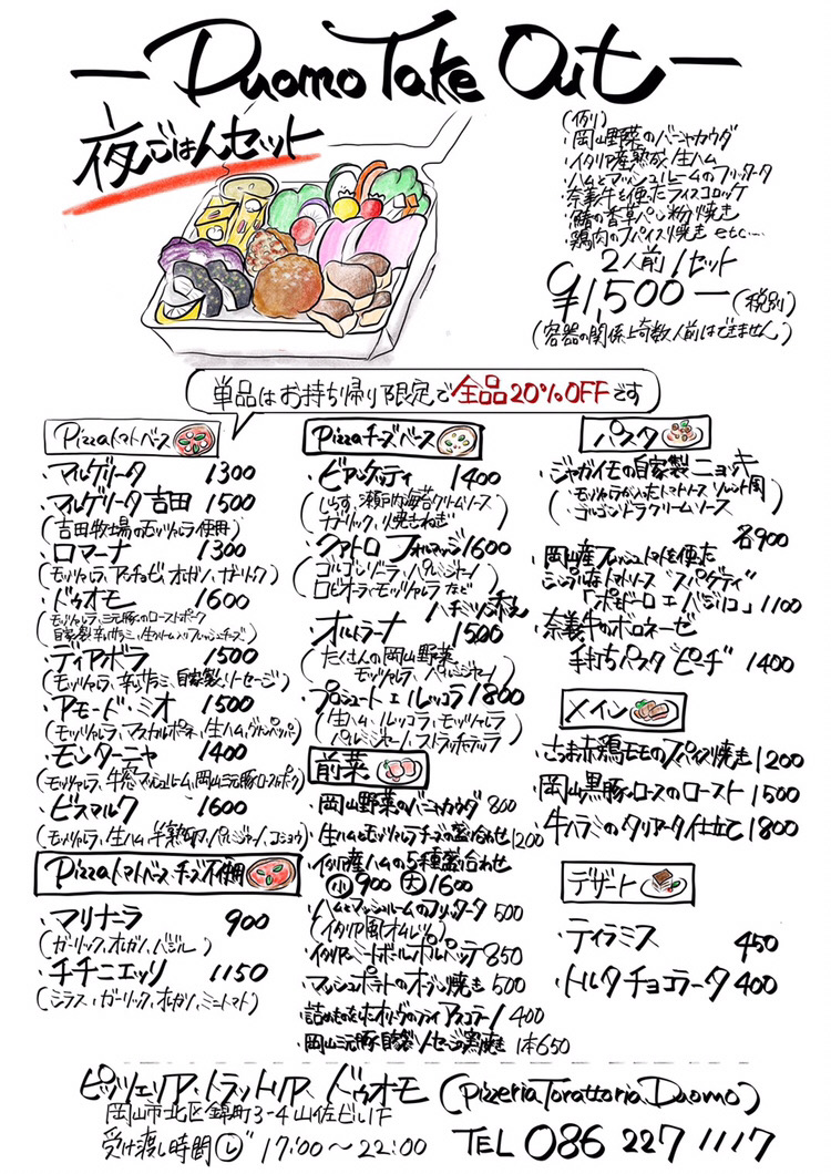 ドゥオモさんはもともと若い女性からお子様、中高年のかたたちに大人気だったのでテイクアウトが始まったと知り、車で持ち帰るかたが増えてきました(*^。^*)