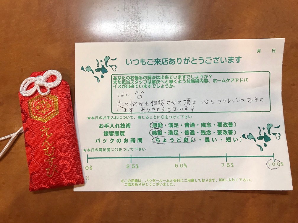 先日、お客様のI様から縁結びのお守りを頂きました。