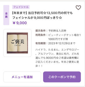 13.500円のフェイシャルANDボディが9.000円でできちゃいますっ♪