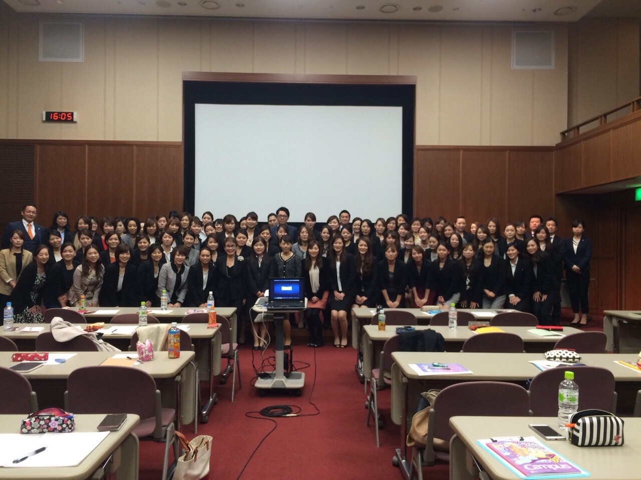 若いエステティシャンたちが先生のお話を目をキラキラさせながら一生懸命聞いていました。