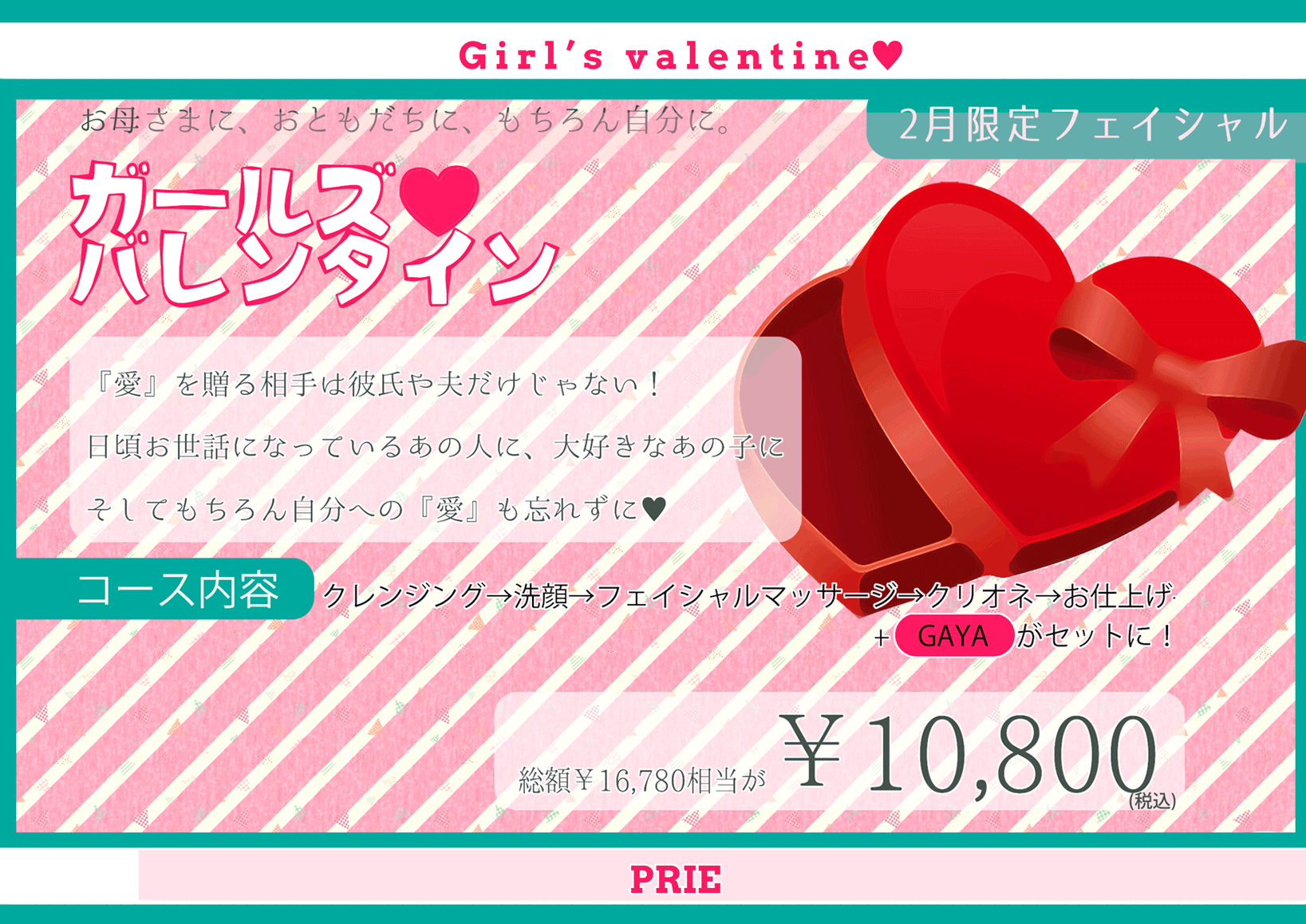【ガールズバレンタインエステ】をこの時期限定で実施しております。