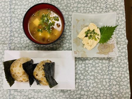 母の夕食の一部です。(ほかに青梗菜と豚肉炒めもありますよ)