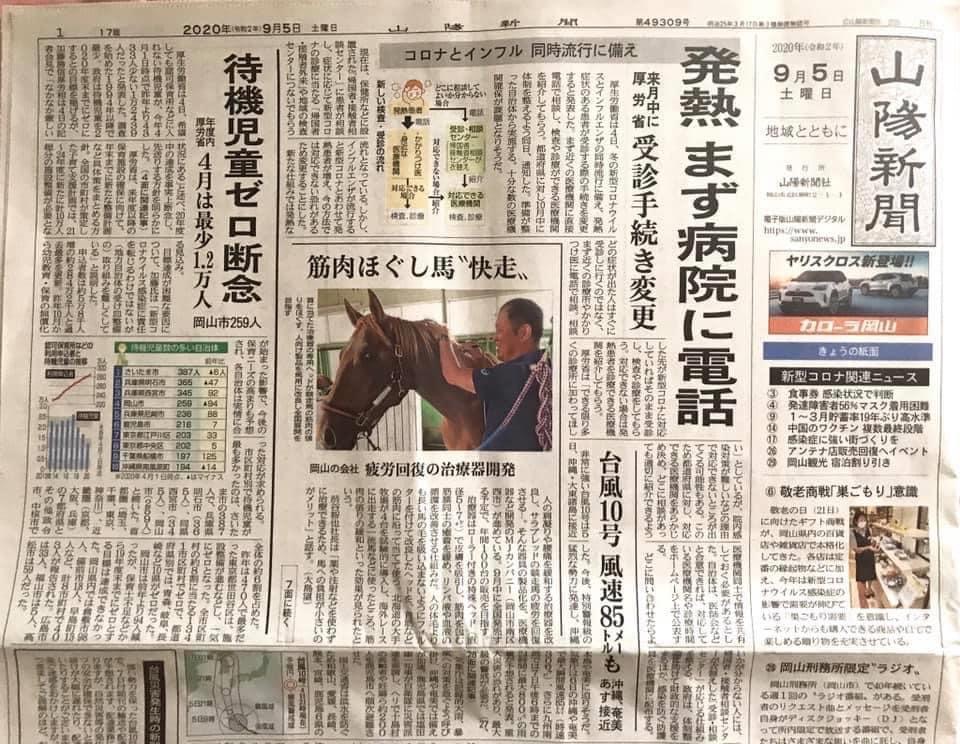 人の身体の筋肉の緊張をほぐし、痛みを軽減することを競走馬のお馬さんに応用しています。