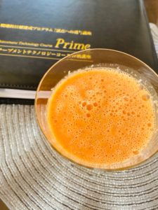昨日はにんじん、レモン、りんご、生姜、アマニ油、すりごま。