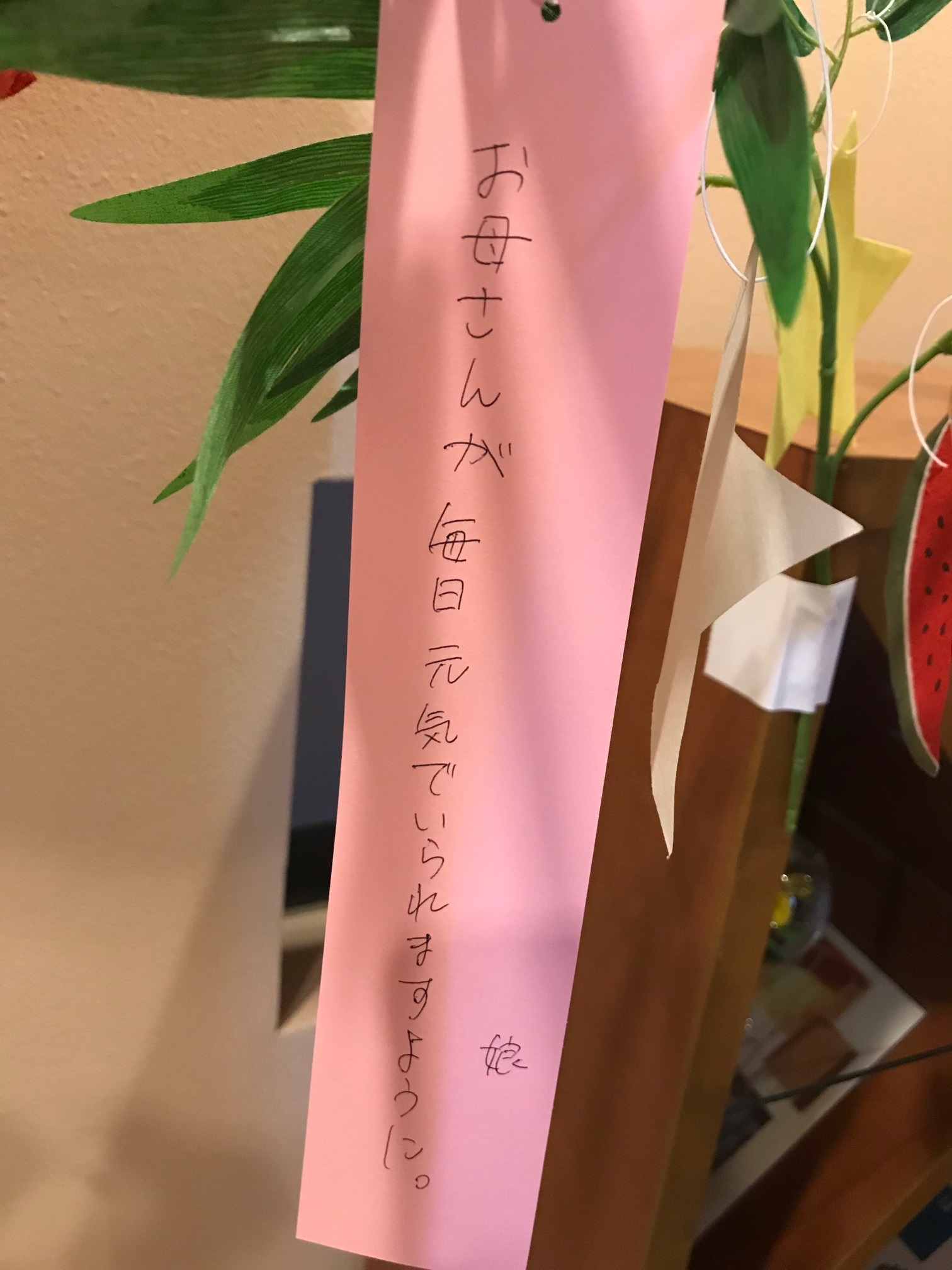 これ大学生の次女が書いた短冊です。