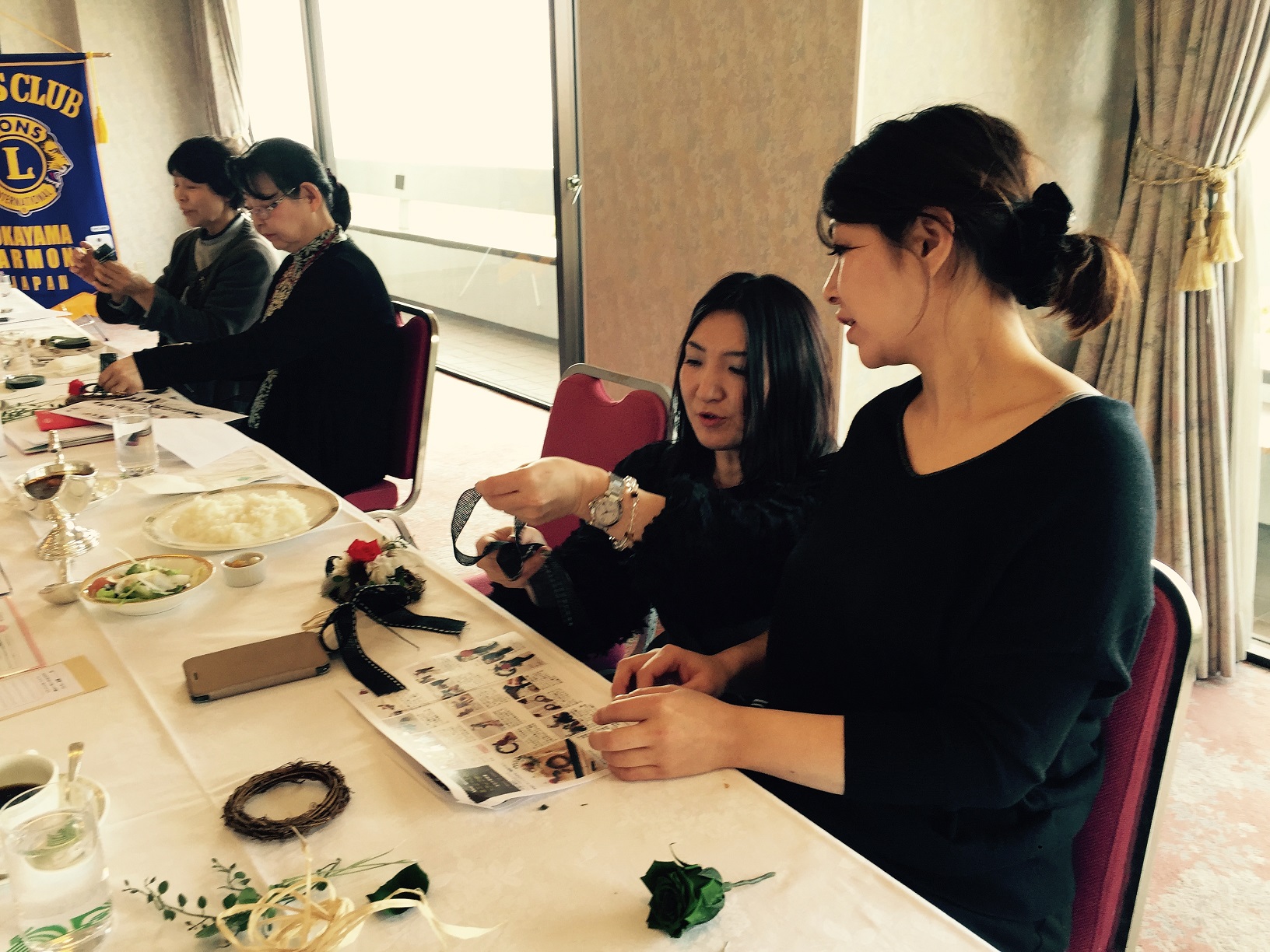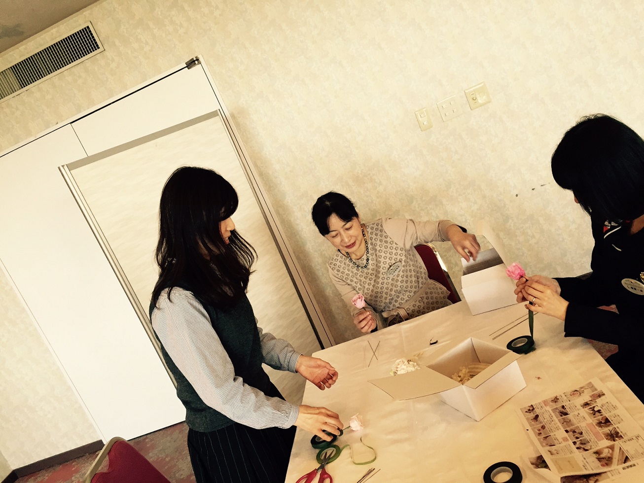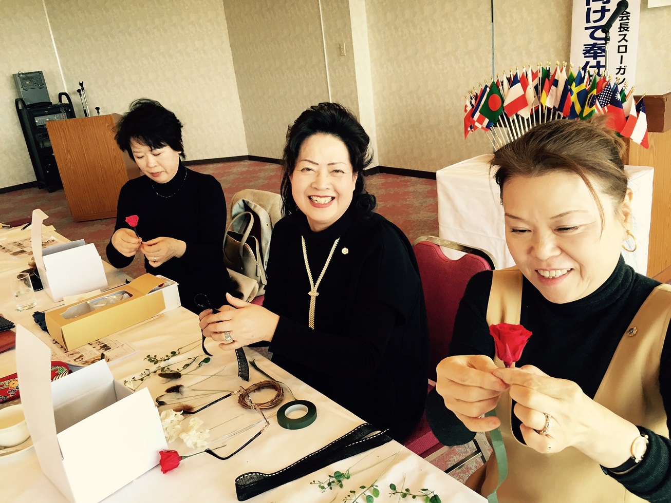 今回は経営者の友人でもある【シンフラワー株式会社】の森口牧子さんを講師としてお招きして会員の皆様とお花ドアノブを作りました。