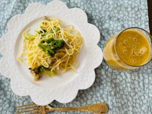 そしていつものスムージーはトマト、にんじん、レモン、小松菜、生姜、キウイ、バナナ、MTGオイルです。