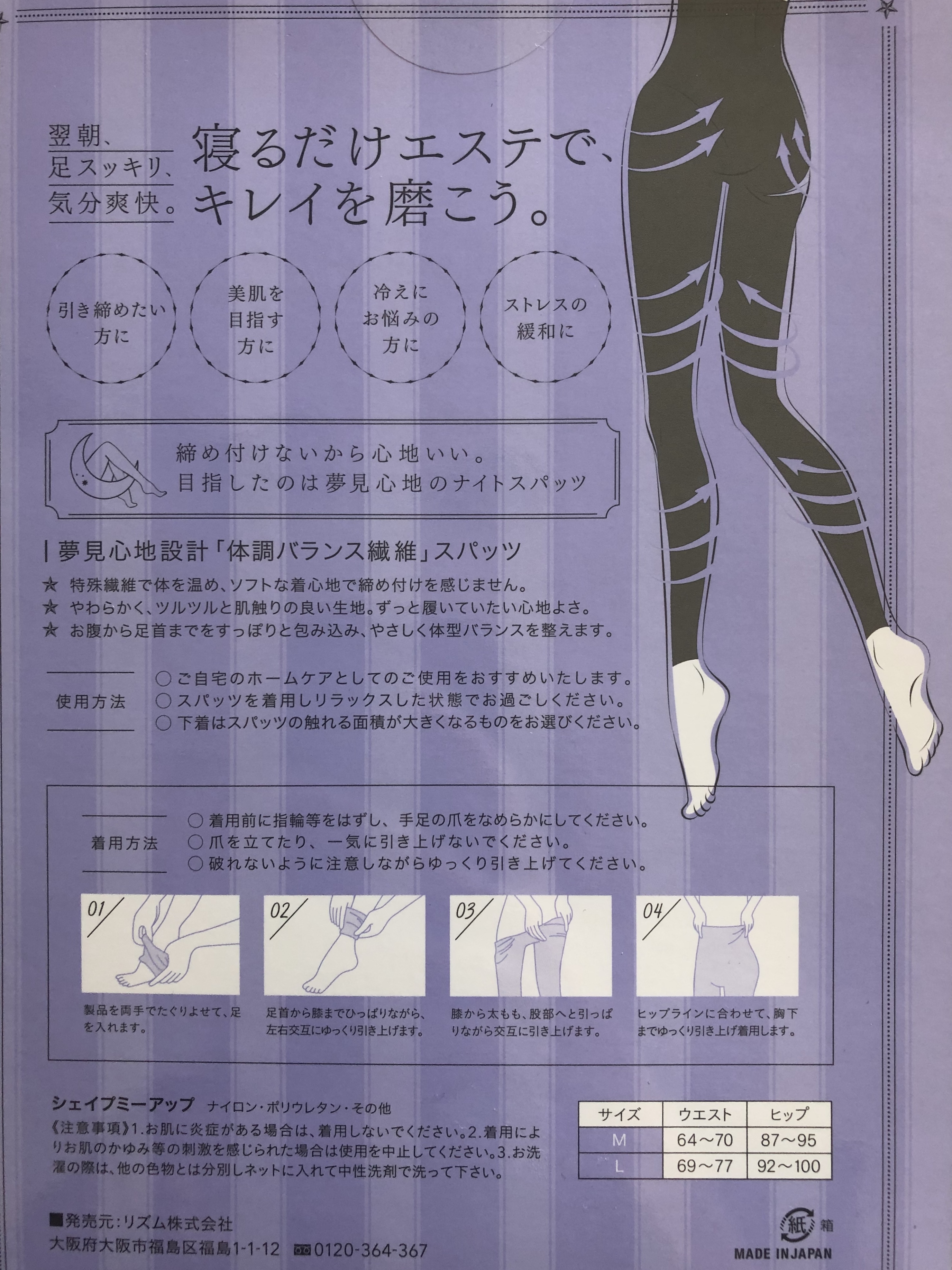 寝る時に履くナイトスパッツなんですが、履いた感想は締め付けもなく気持ちいい♡