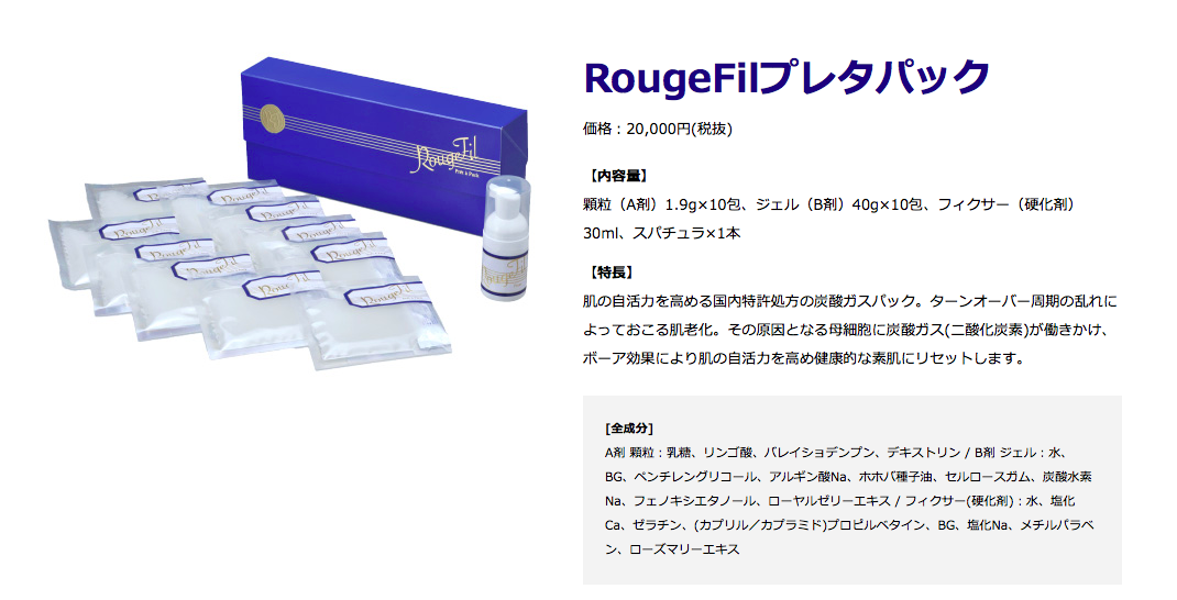 このパックの特徴はお肌の自活力を高める国内特許処方の炭酸ガスパックです。