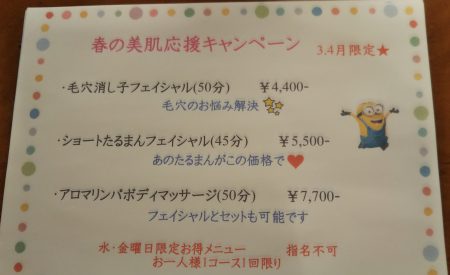3月4月はプリエの人気メニューが超お得にご利用いただける【春の美肌応援キャンペーン】を実施してます♪