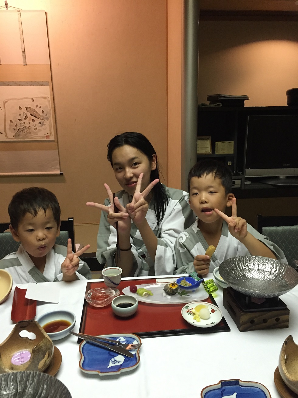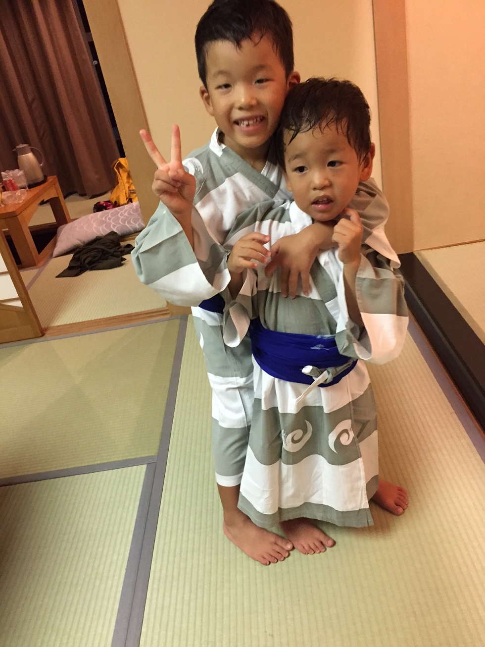 仲居さんがお部屋の説明をしてくださっているときに1号2号は真っ裸になりじゃばーーーん。