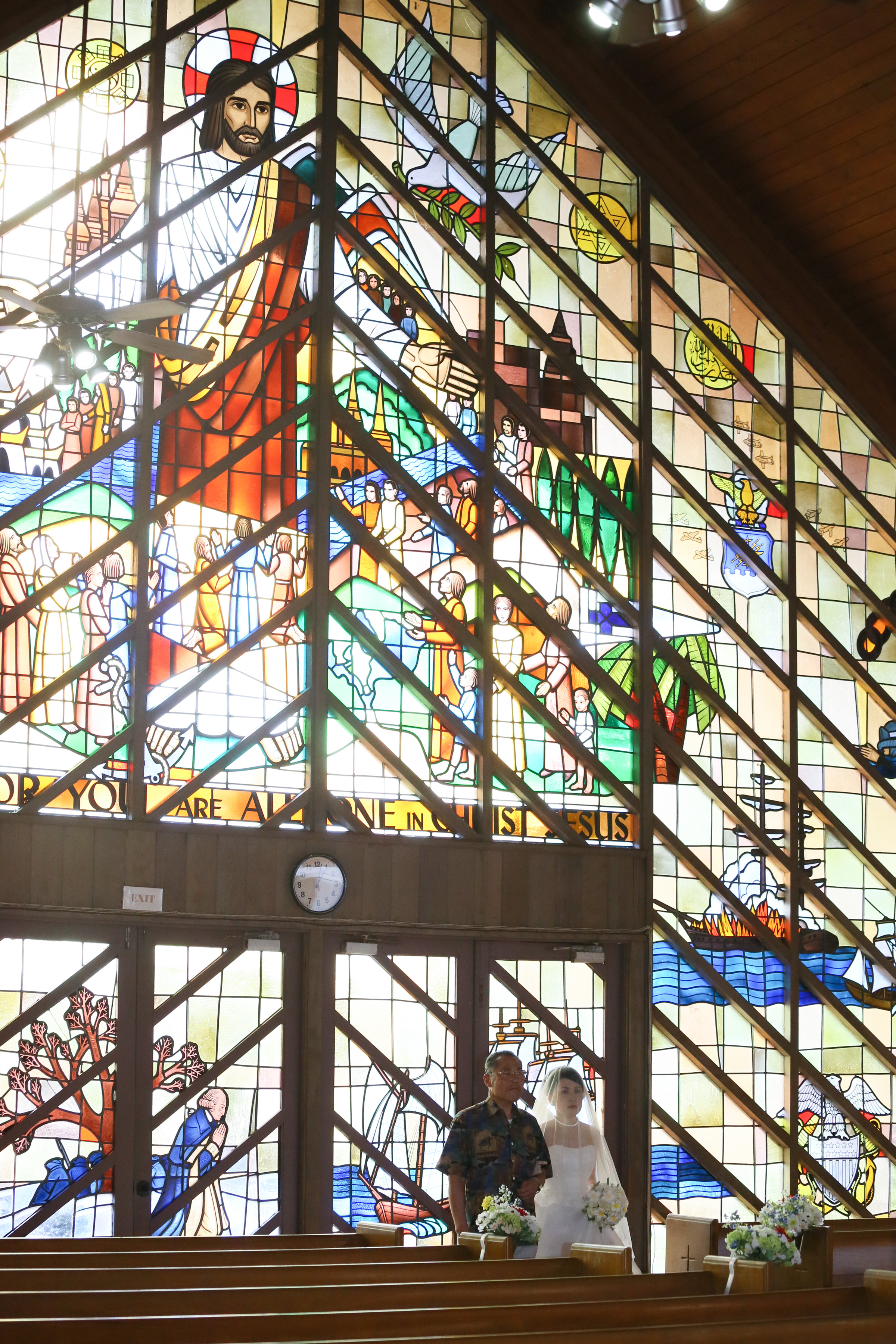 ステンドグラスがとてもキレイな教会で、温かい雰囲気でした。