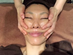 お顔に圧をかけたり、摘んだり、強めのマッサージをしながら小顔リフティングをしていきます。筋肉をダイレクトに刺激することで、筋肉、皮膚を強化して、深部から活性化して引き上げていきます。