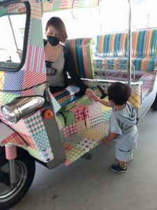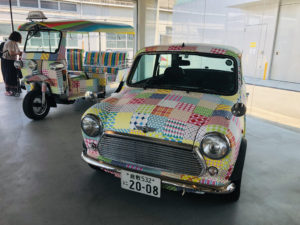 残念ながら、工場の中は写真は、NGだったのですが、外にはマスキングテープでデザインされたバイクや、自転車、車椅子、トゥクトゥク(タイの乗り物)までありました。