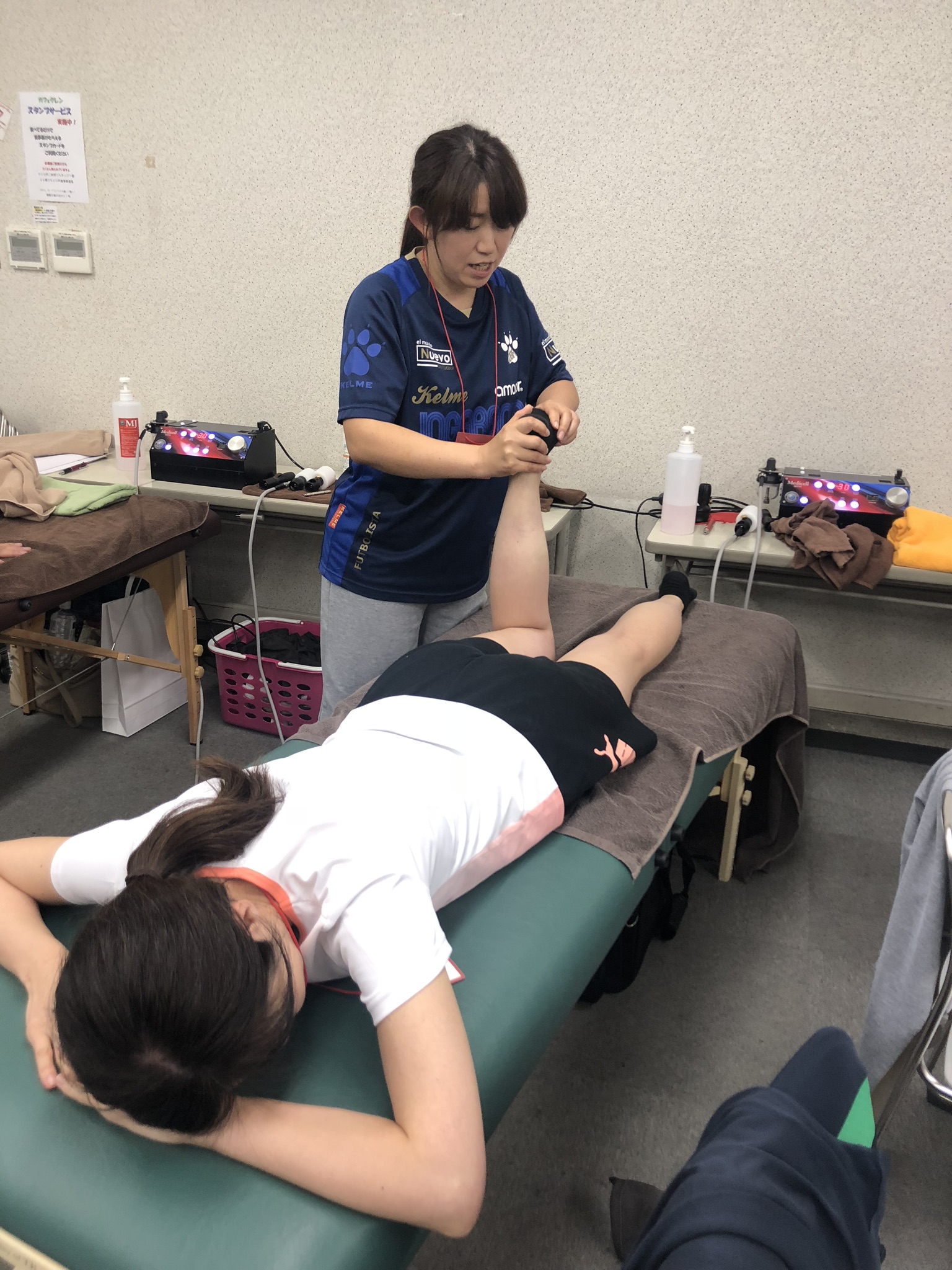 メディセルを使っての、結果効果を検証し学ぶ為、身体の箇所毎に、動作や可動域を調べる筋肉テストを行い一つ一つの筋肉の働きを学びながら施術をしていきました。
