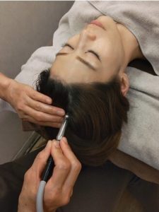 デコルテ、お首、お顔、頭皮と筋膜リリースをして筋肉を弛め、血液とリンパを流す通り道をしっかり作っていく筋膜リリースをしていきます。