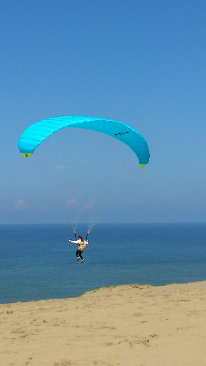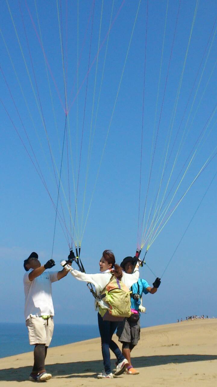 先日のおやすみに、鳥取砂丘で、ずーっと興味のあったパラグライダーいってきました!