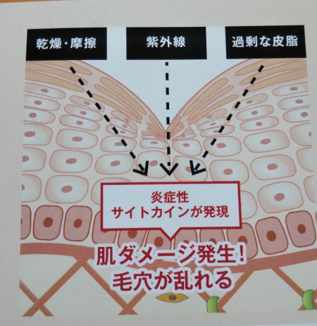 紫外線、乾燥、摩擦、過剰な皮脂分泌などの刺激を受けた肌は、細胞を守るために「炎症性サイトカイン」を発現。