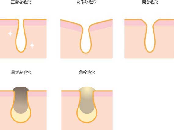 ・ターンオーバーが乱れ、毛穴がすり鉢状に陥没、または盛り上がった「開き毛穴」