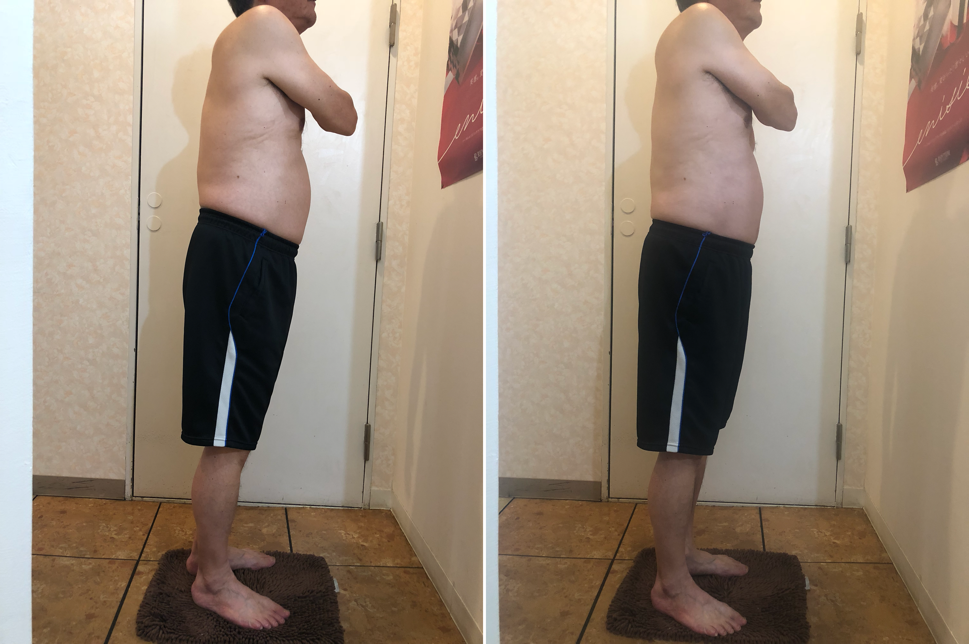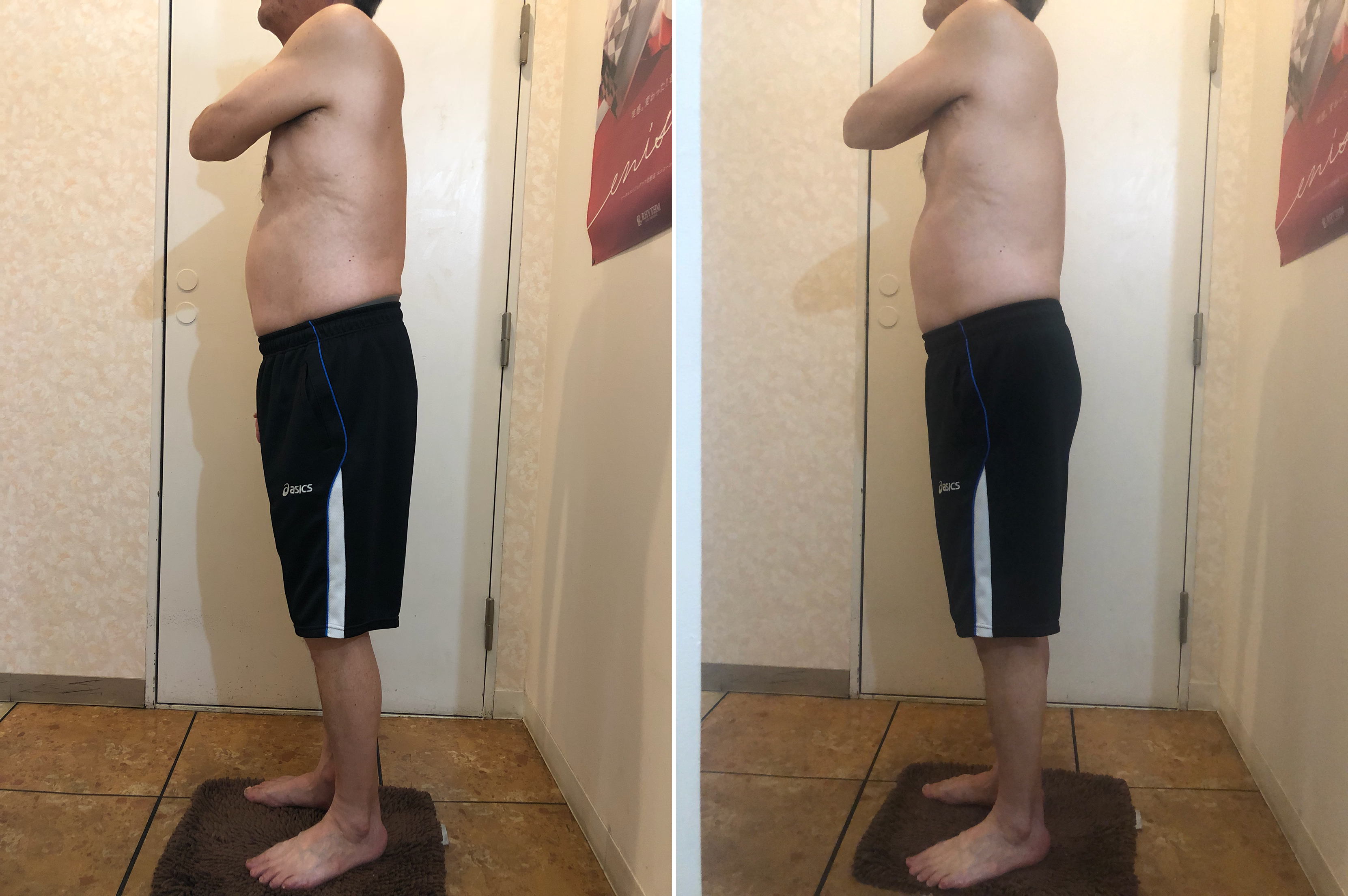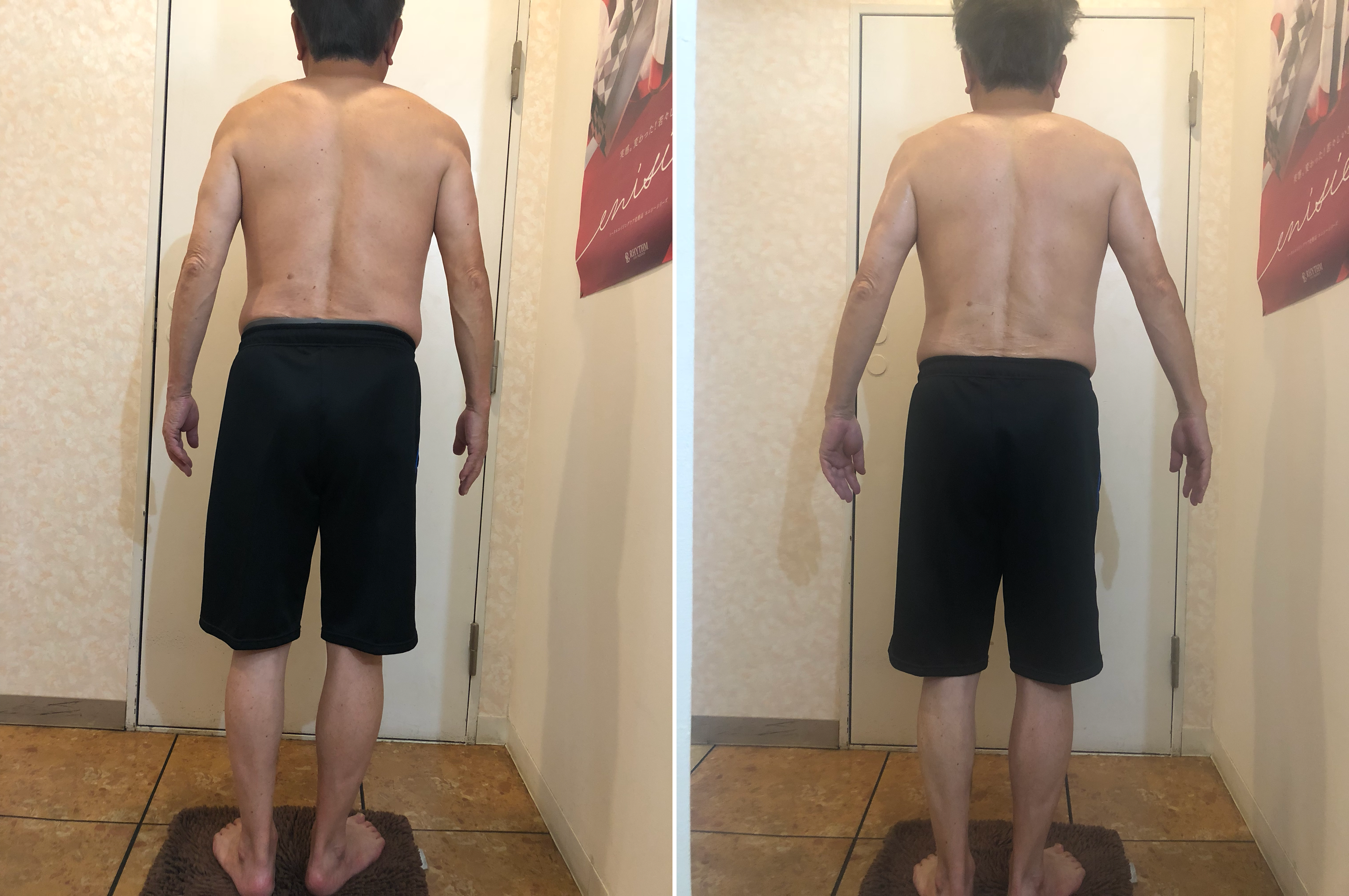 腰の筋肉と肩甲骨の筋肉が緩んでます。猫背気味に固まっている筋肉が、緩んでいます。