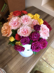 先日、プリエスタッフから周年でお店に送ったお花を花瓶に差し替えてみました☆