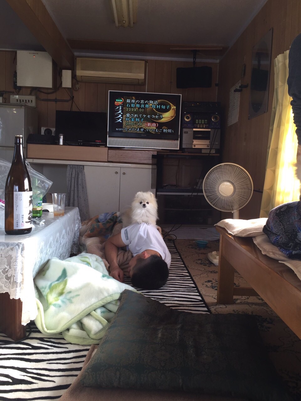 一泊15000円は、四つ手網の中では高いほうらしく、室内には冷暖房とカラオケもついていました☆