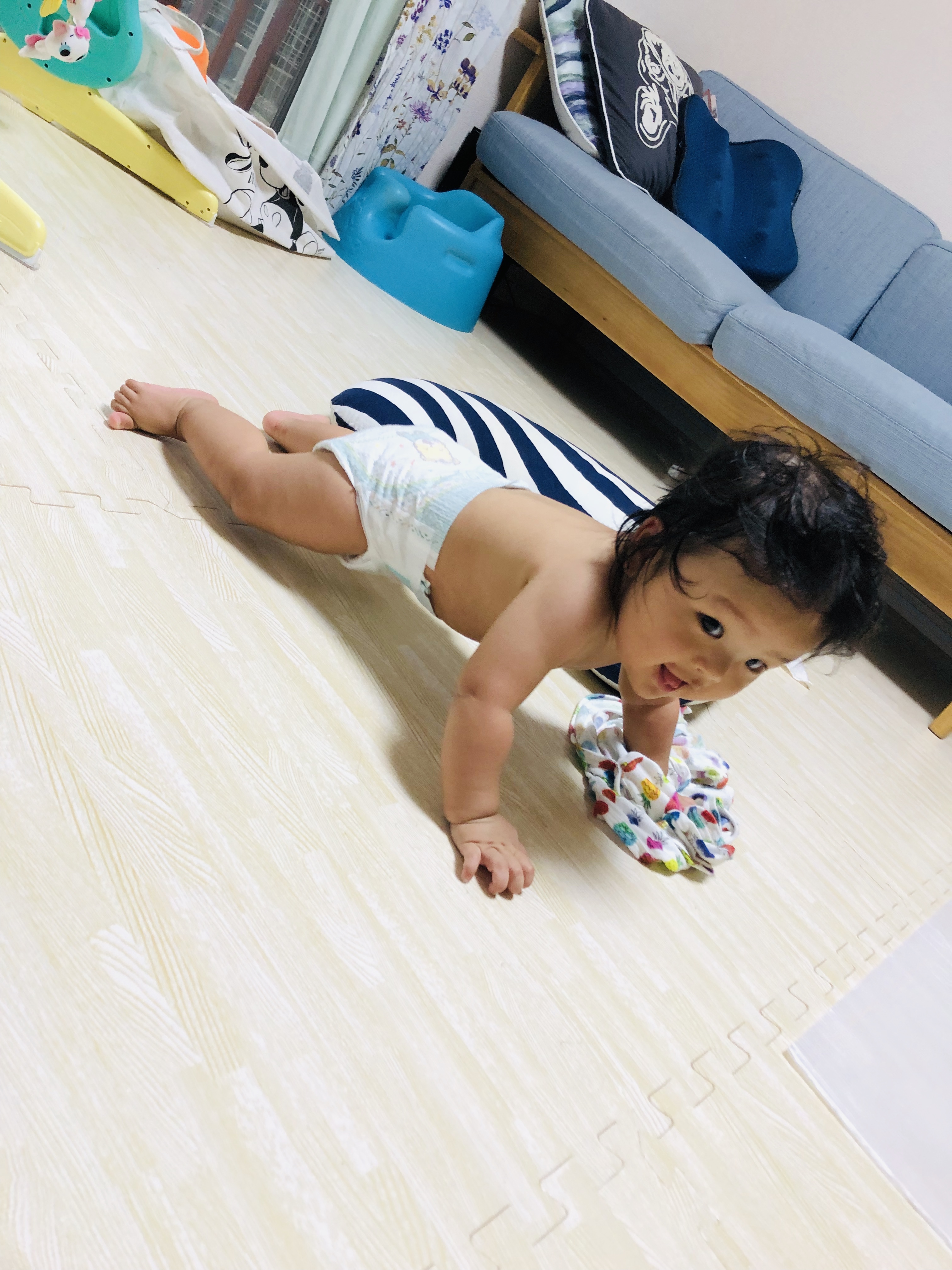 1歩右足が出てハイハイしそうだったり、しなかったりと日々可愛いです❤❤