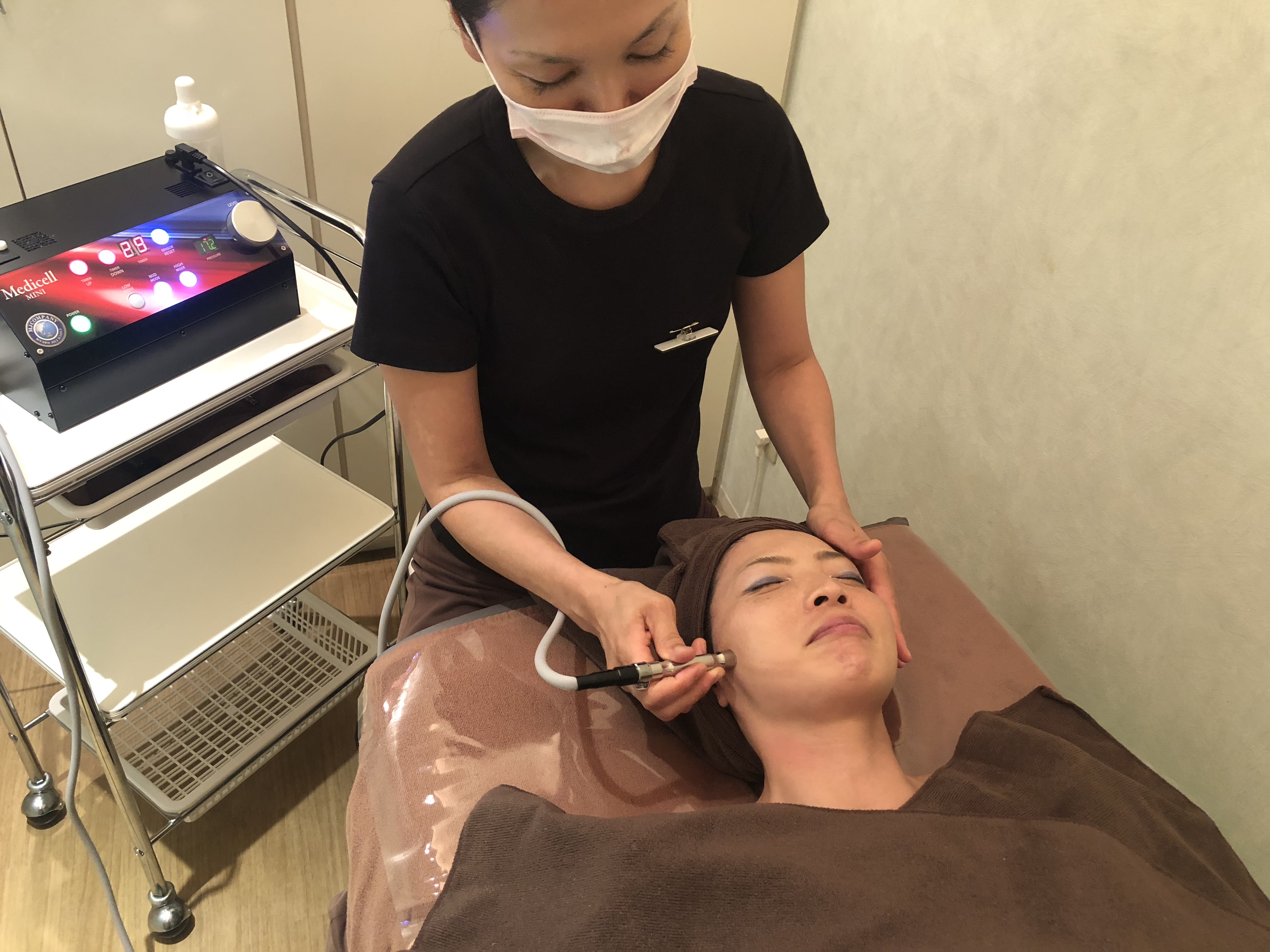 しーっかり筋膜メディセルを当てた後のフェイシャルエステはリフトアップだけで無く、お身体が楽〜になります♩