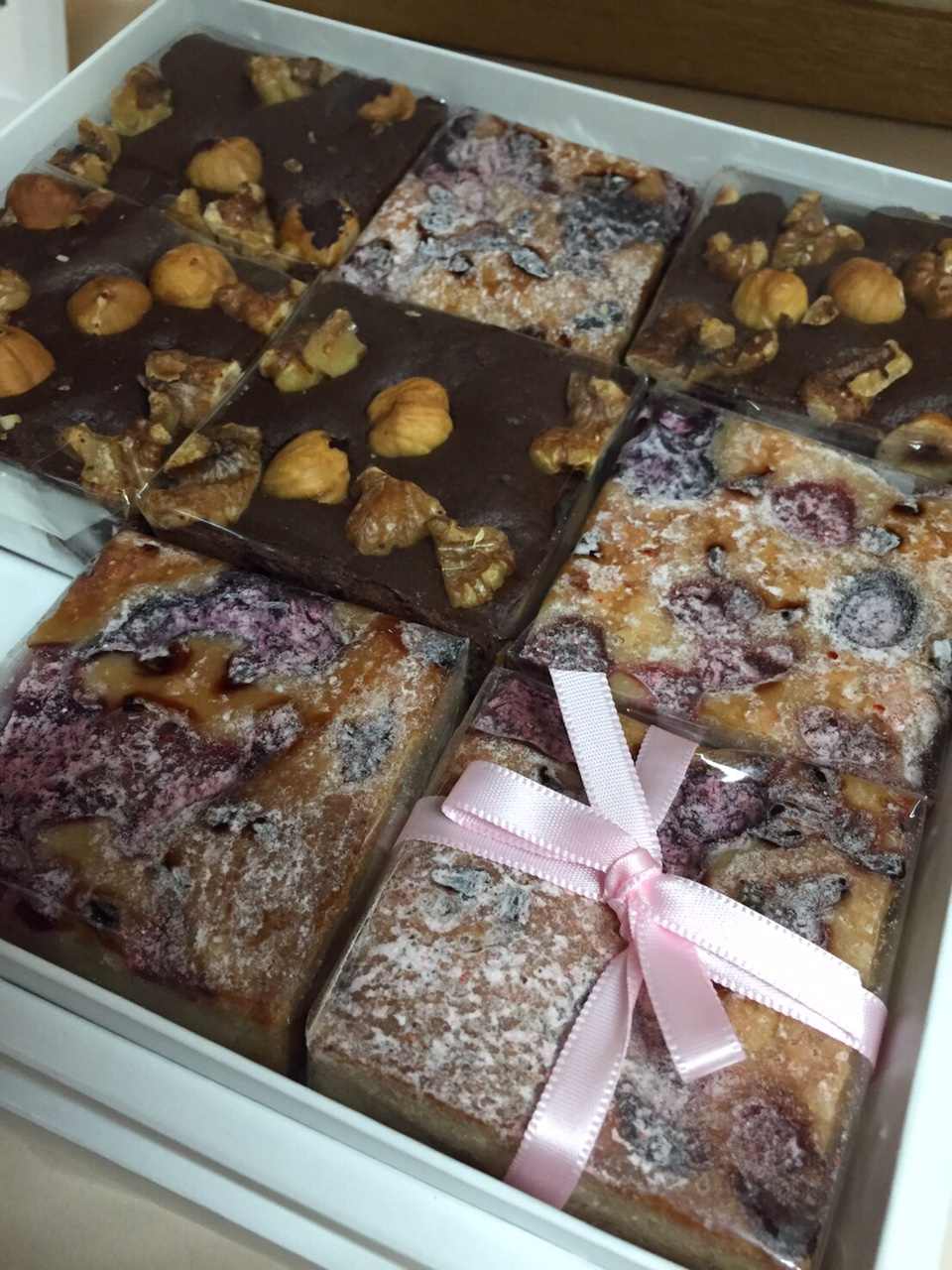 ココのケーキ屋さんは、社長がいつも女の子の誕生日に必ず似顔絵付きで頼んでくれるケーキ工房ポムさんの豆乳ブラウニーです。