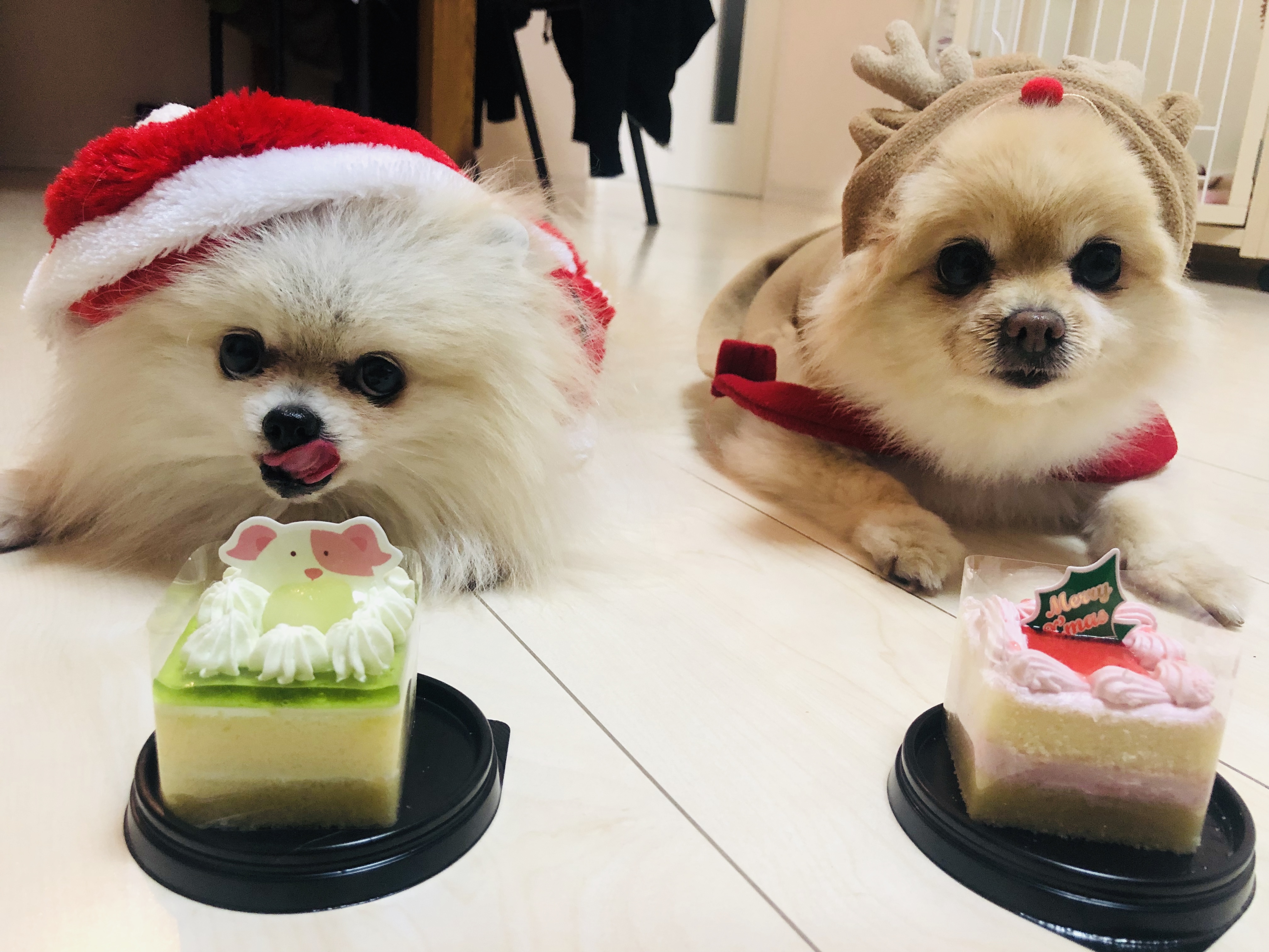 我が家の愛犬のクリスマスケーキ前の【待て】のポーズです!毎日メロメロです。