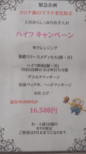 通常30,000円のハイフフェイャルが8月・9月限定で、なんと!16,500円でお受けいただけます。