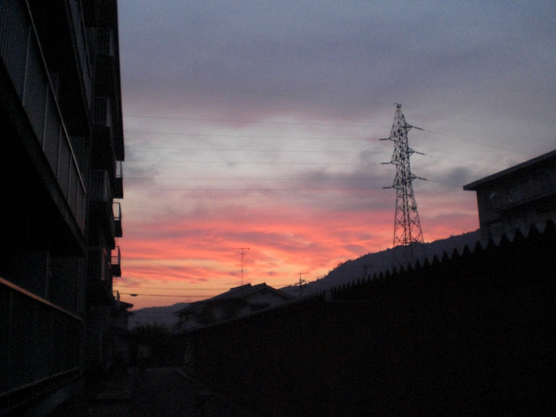 きれいな赤い色した空が見えました。