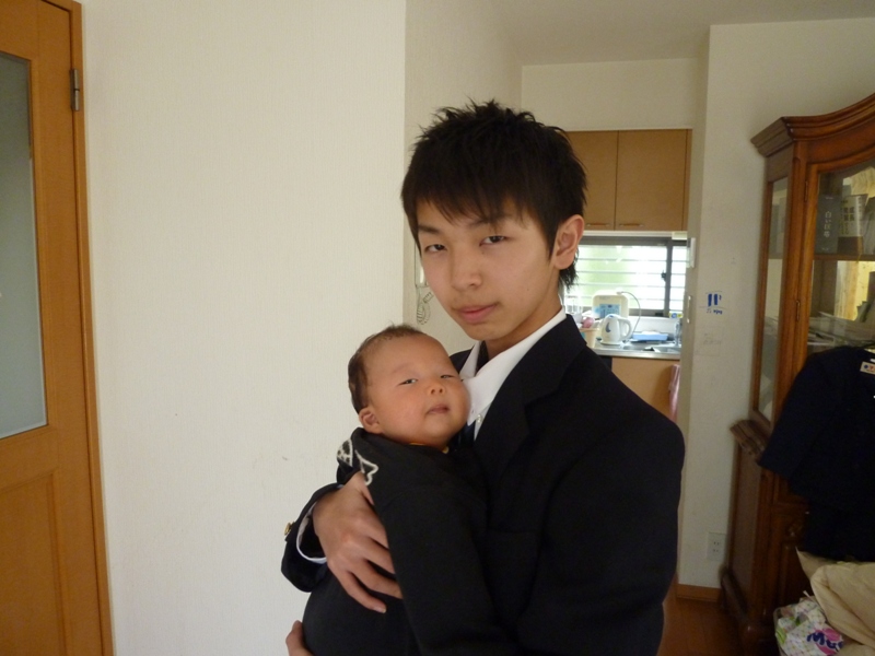 写真は入学式後の制服姿の息子とMAGOの睦季くんです。(おじとおい)の関係。