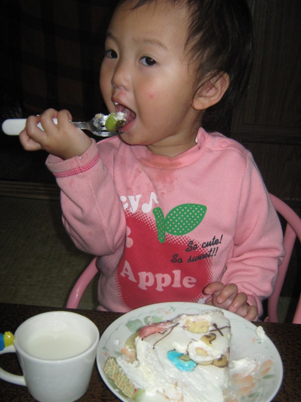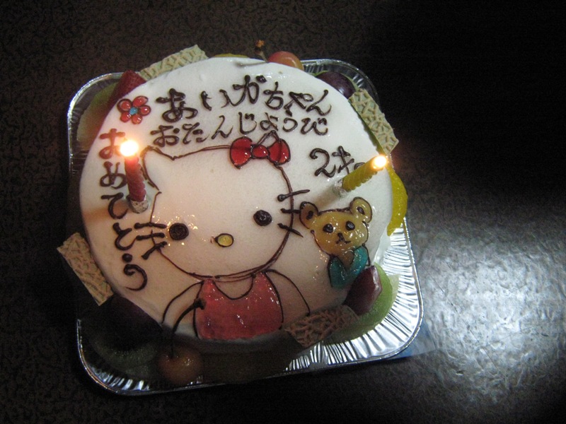 なんと2度目のケーキです。1回目は、トトロのケーキでした。誕生日の歌がよほど気にいったのかずーっと