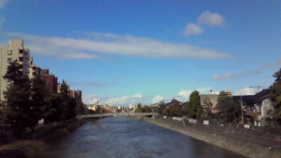 この写真は同じ橋の上から同時刻に撮ったものなんですよ~!!橋を境に全く違う空模様です。