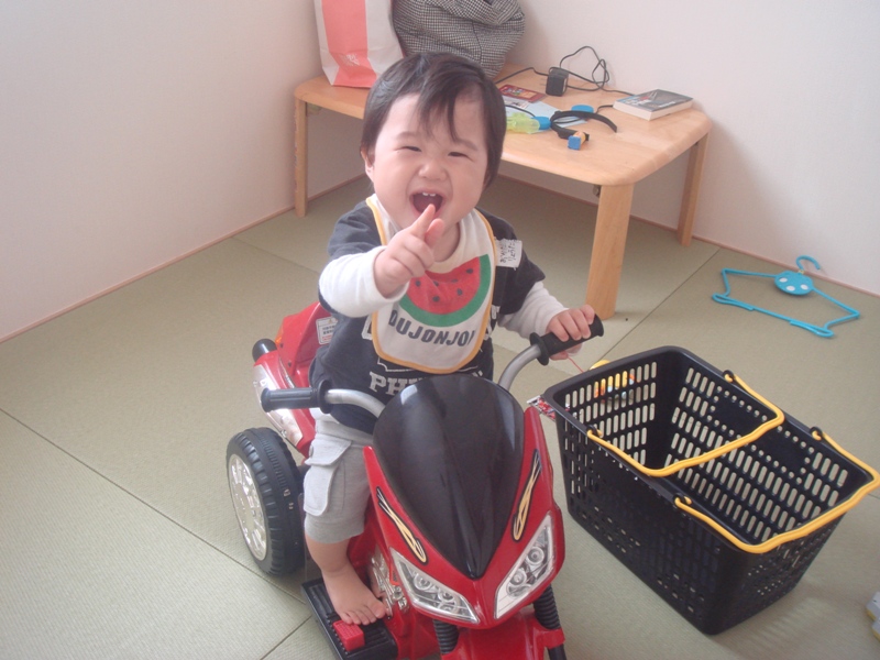 友達の家のミニバイクにまたがりハイポーズ(^O^)/