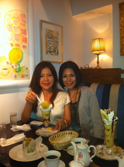懇親会が終わって女子会をしました。(夜中の1時にパフェを食べてしまいました。(;一_一))