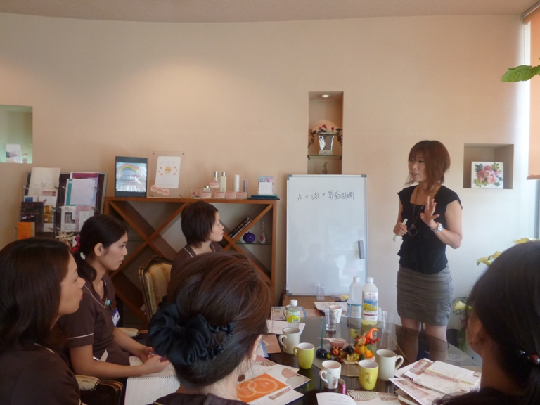 さて今回のブログは先日、業務時間前に行いました弊社で取り扱っていますアジュバンコスメの研修を紹介させて頂きます。