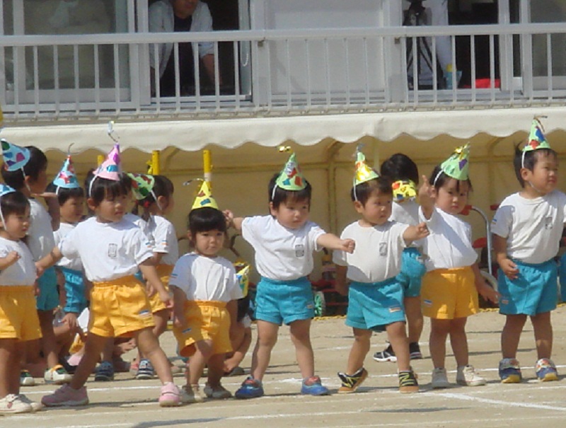 かけっこしたり、おどったり、とってもかわいかったみたいです。右から3人目のまるまるとした子がこたろー君。
