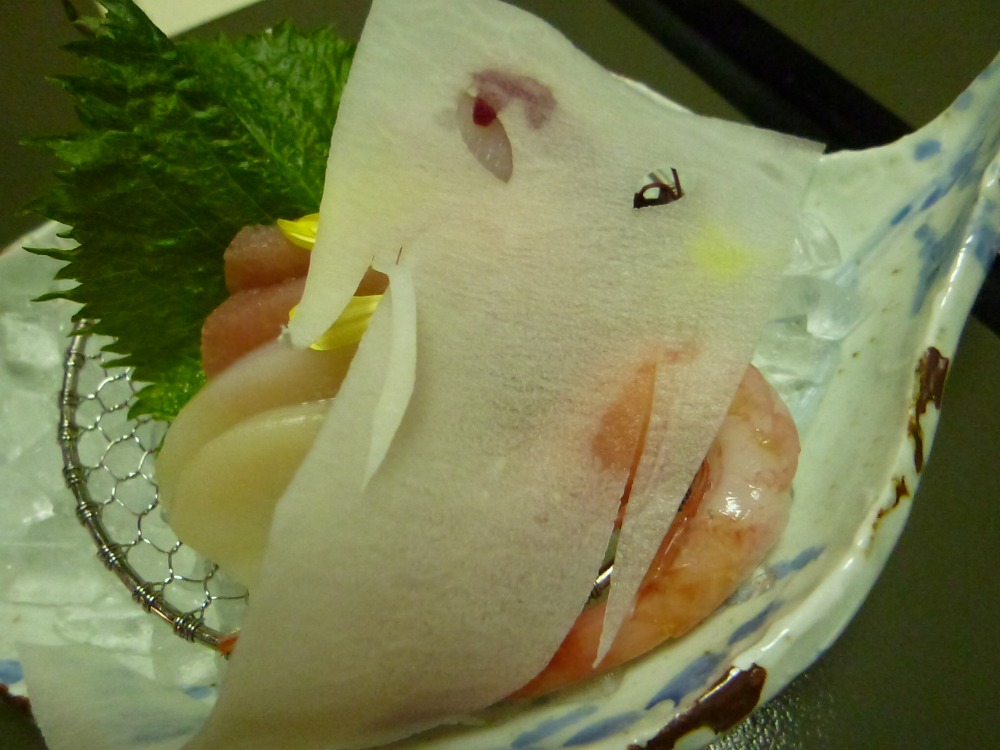 鳥取県ならでは。ゲゲゲの鬼太郎にちなんでお造りの上にはいったんもめんが飛んでいました☆
