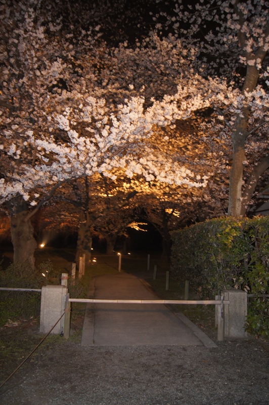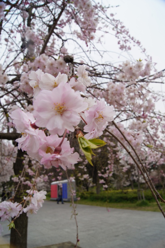 公園の桜を見ました。二条城は、夜桜をみたのですが