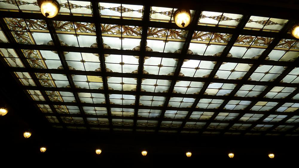 中央広場に出ると1階から4階まで吹抜きで窓と天井にはやっぱりステンドグラスが嵌めこまれていました。