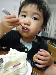 ケーキを食べて歌を歌ってお祝いしました(^。^)