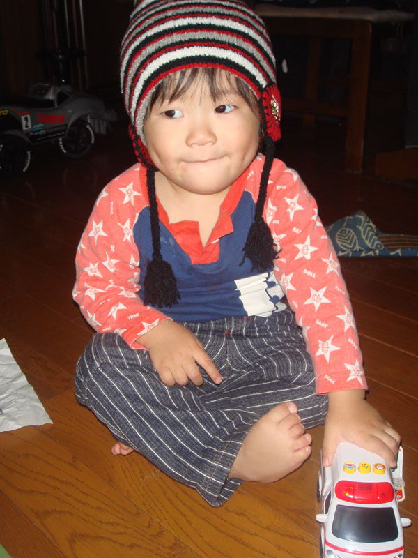 寒くなったので帽子をかぶせた写真と、10月に保育園で運動会があったのでその写真を載せました。
