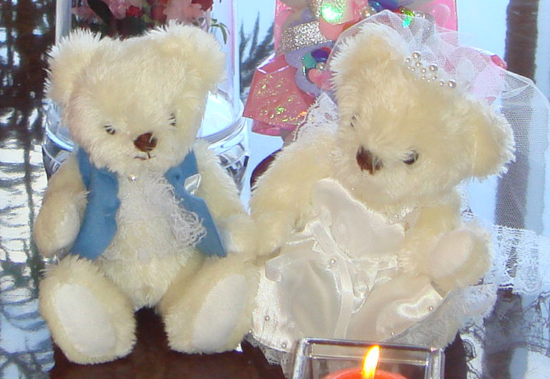 写真のくまは、私がせっせと作り、結婚式の受付の横に置いてもらいました(*^_^*)
