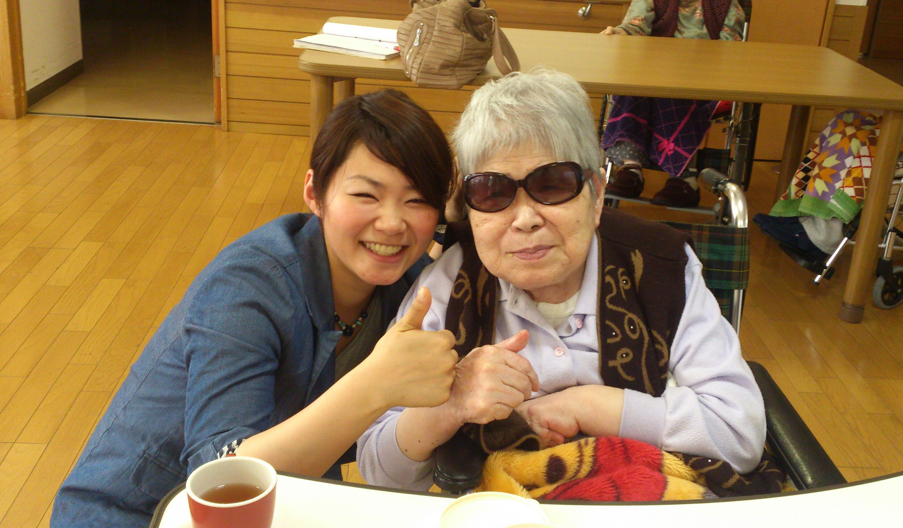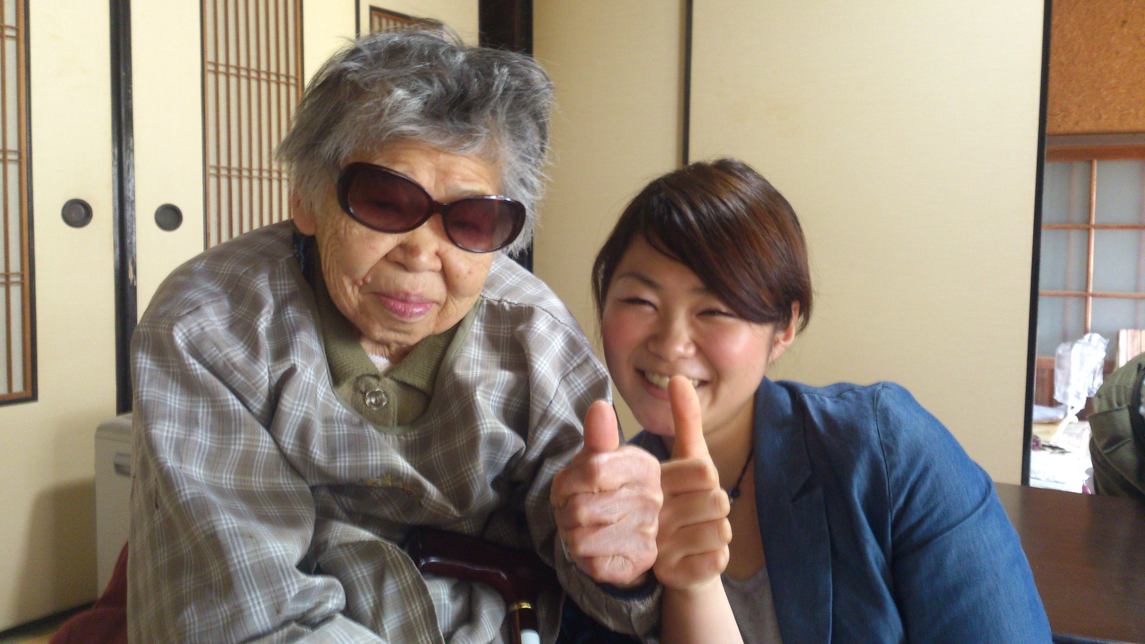 話している途中ふと思いつきで、おばあちゃんにサングラスをかけてみました☆