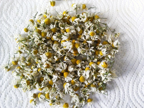 ローズのほかに、ジャーマンカモミールも摘み取ってきていたんです。