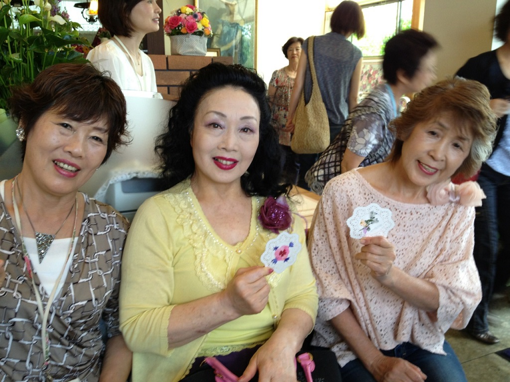 先日、お客様でもある押し花の先生、冨山由子先生(お写真左)の個展に行かせて頂きました。