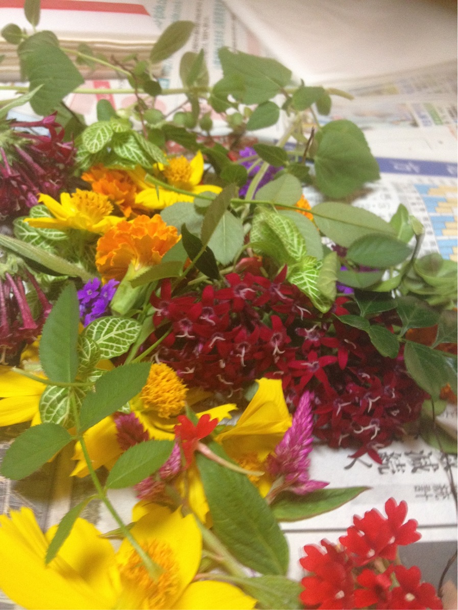 今採れ小花や葉っぱたちです。